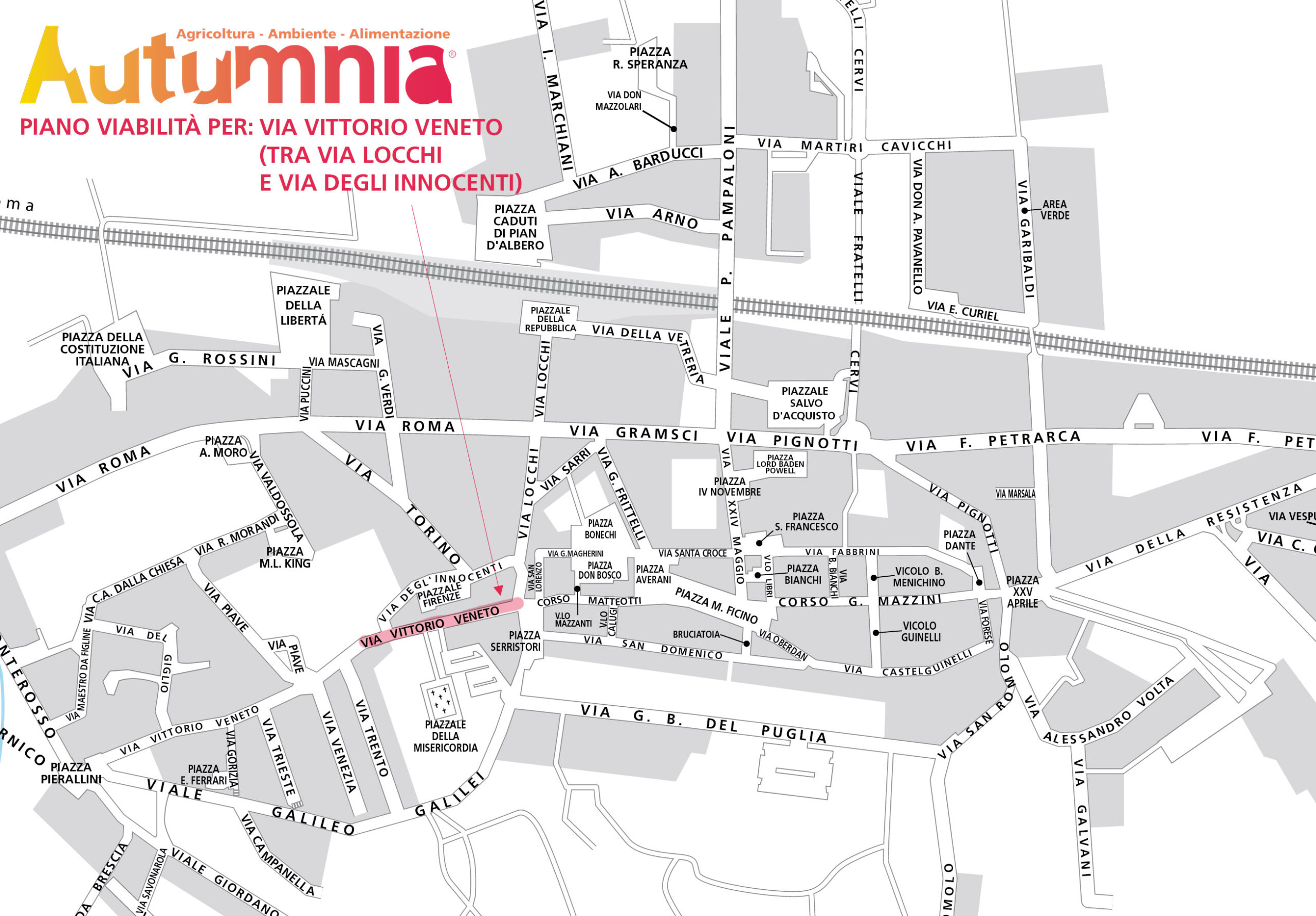 Lunedì 3, martedì 4 e mercoledì 5 novembre 2025 dalle ore 06:00 fino alle ore 08:00 temporanea sospensione della circolazione stradale su Corso Vittorio Veneto, per il tempo strettamente necessario, e transito sullo stesso, in senso contrario di marcia, di autocarri autorizzati e deputati al trasporto del materiale per le operazioni di montaggio delle infrastrutture per Autumnia 2025. Il suddetto transito dovrà essere effettuato in sicurezza, bloccando temporaneamente la circolazione stradale intersecante o passante per tale tratto stradale alla presenza di personale della ditta incaricata o altro personale addetto in funzione di movieri, eventualmente anche con l’ausilio di personale di Polizia stradale;
