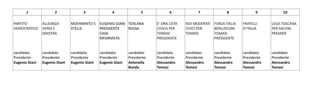 Domenica 12 e lunedì 13 ottobre 2025 si svolgeranno le consultazioni per l'elezione del Presidente della Giunta regionale e del Consiglio regionale della Toscana, con eventuale turno di ballottaggio nei giorni di domenica 26 ottobre e lunedì 27 ottobre 2025.